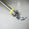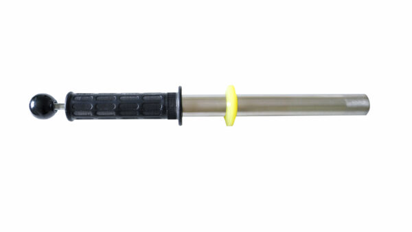 Ein besonderes Feature ist der gelbe Abstreifring mit einem Durchmesser von 4,5 cm. Er ermöglicht das einfache und berührungslose Entfernen der eingesammelten CONFETTI. Dazu zieht man am Griff, wodurch sich der Magnetkern im Inneren des Edelstahlrohrs nach oben bewegt. Der gelbe Ring bleibt dabei unten und schiebt die anhaftenden Metallpunkte zuverlässig vom Magnetstab ab. So lassen sich die Referenzpunkte schnell und sauber abstreifen und wiederverwenden.
